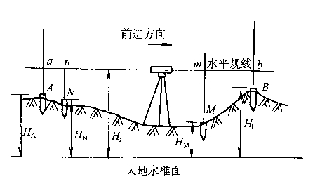 計(jì)算公式為:HB=HA+hAB=HA+a-b,即HB=Hi-b.Hi儀器水平視線的高程,常稱為儀器高程或視線高程。