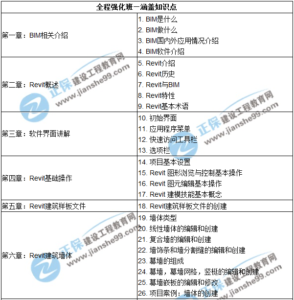 全程強(qiáng)化班:涵蓋76個知識點(diǎn),詳細(xì)全面的講解BIM相關(guān)軟件。
