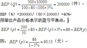 解析:用生產(chǎn)能力利用率表示的盈虧平衡點(diǎn):
