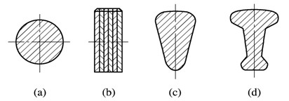 吊鉤鉤身(彎曲部分)的斷面形狀有圓形、矩形、梯形與T字形等,如圖1-5所示。從受力情況來看,T字形斷面最合理,可以得到較輕的吊鉤;