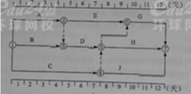【建設(shè)工程教育網(wǎng)老師權(quán)威解析】:安排B工作第2天進(jìn)場(chǎng)開(kāi)始施工,施工順序按照B→D→J→G,施工機(jī)械在現(xiàn)場(chǎng)閑置只有D工作與J工作之間的1天.