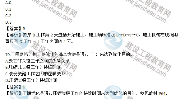 69.某工程雙代號時標網絡計劃如下圖所示,因工作B、D、G和J共用一臺施工機械并必須順序施工,在合理安排下,該施工機械在現場閑置(?。┨臁! ?/p>