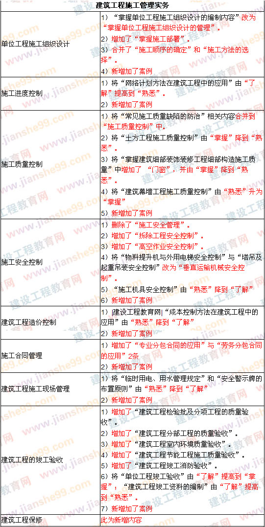 2009年二級建造師新版教材和大綱已于3月5日由建工社統(tǒng)一發(fā)往各地書店,在之前的建工社發(fā)布的內(nèi)容變化信息里,提到的內(nèi)容變化在10%左右,但是當(dāng)建設(shè)工程教育網(wǎng)的老師拿到教材和大綱之后,發(fā)現(xiàn)實(shí)際調(diào)整變動(dòng)比較大,為了能讓廣大考生對09年二級建造師考試內(nèi)容變動(dòng)情況有一個(gè)全面的了解及認(rèn)識,建設(shè)工程教育網(wǎng)教務(wù)人員及時(shí)做出相關(guān)變動(dòng)說明,望廣大學(xué)員及時(shí)參考并做好2009年學(xué)習(xí)準(zhǔn)備。