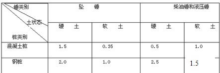 錘質(zhì)量和樁質(zhì)量比值表 表2K311051-2