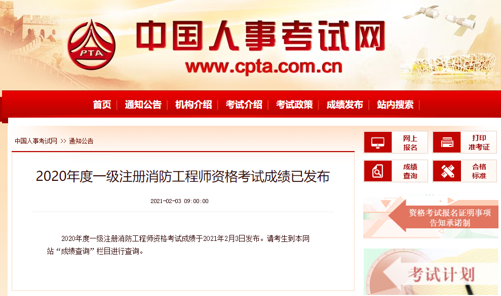 【官宣】中國人事考試網(wǎng)發(fā)布一級(jí)注冊消防工程師成績