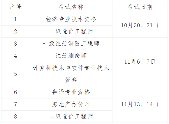 海南省2021年度一級造價師等8項專業(yè)技術(shù)資格(水平)考試安排