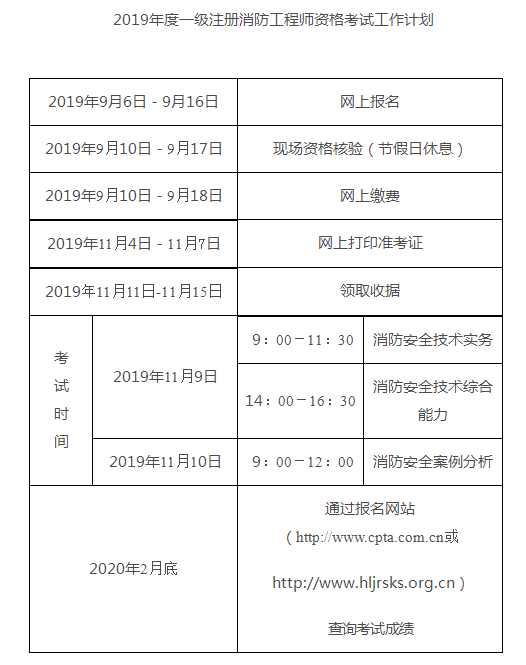 黑龍江省2019年一級(jí)消防工程師的報(bào)名考試日程安排詳情