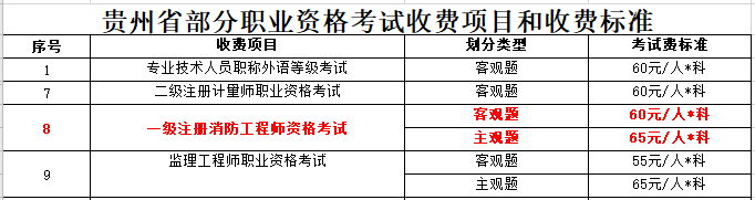 貴州省關(guān)于規(guī)范2021年一級(jí)注冊(cè)消防工程師考試收費(fèi)標(biāo)準(zhǔn)的通知