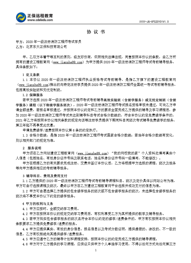 2020年一級(jí)注冊(cè)消防工程師協(xié)議書
