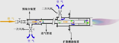 可燃氣體的燃燒不需像固體、液體那樣經(jīng)熔化、蒸發(fā)過程,其所需熱量僅用于氧化或分解,或?qū)怏w加熱到燃點,因此容易燃燒且燃燒速度快。根據(jù)燃燒前可燃氣體與氧混合狀況不同,其燃燒方式分為擴散燃燒和預(yù)混燃燒。