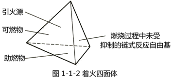 因此,可以用著火四面體來表示有焰燃燒的四個條件,即可燃物、助燃物、引火源和鏈?zhǔn)椒磻?yīng)自由基。