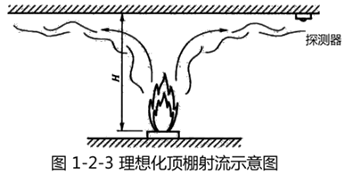(2)頂棚射流。當(dāng)煙氣羽流撞擊到房間的頂棚后,沿頂棚水平運(yùn)動,形成一個較薄的頂棚射流層,稱為頂棚射流。由于它的作用,使安裝在頂棚上的感煙探測器、感溫探測器和灑水噴頭產(chǎn)生響應(yīng),實現(xiàn)自動報警和噴淋滅火。