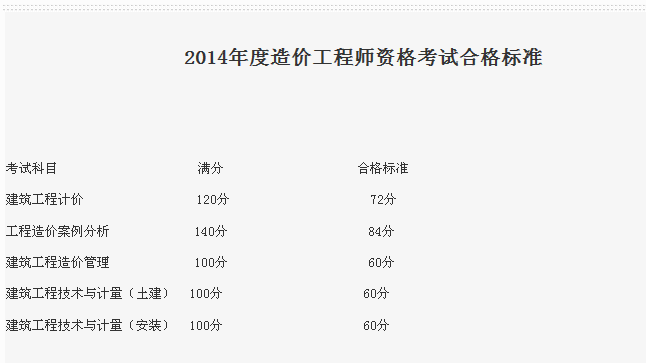 海南2014年度造價工程師資格考試合格標(biāo)準(zhǔn)公布