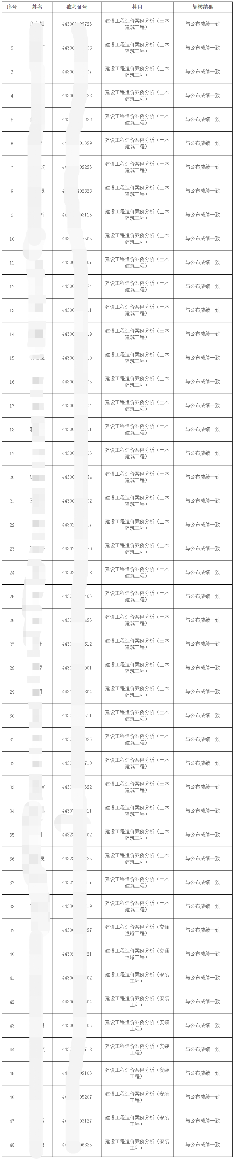 2020年一級(jí)造價(jià)工程師湖南考區(qū)主觀題成績(jī)復(fù)核結(jié)果公告