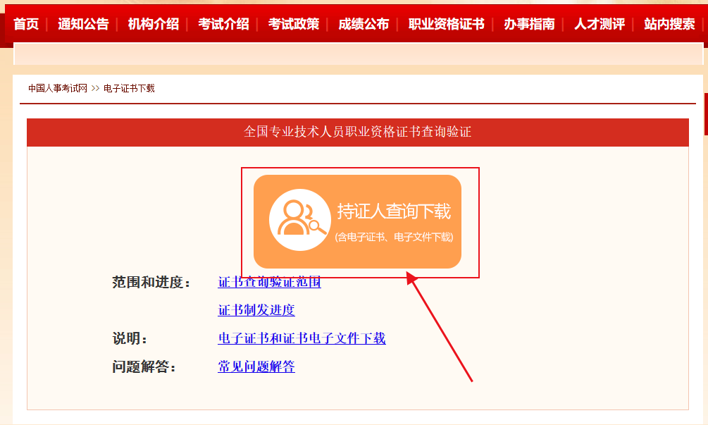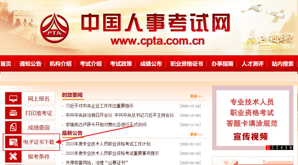 第一步:打開中國(guó)人事考試網(wǎng)-點(diǎn)擊“電子證書下載”