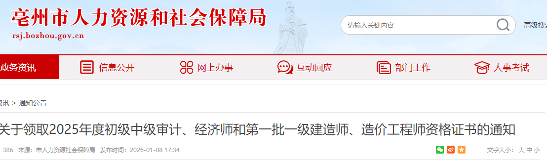關(guān)于領(lǐng)取2025年度初級(jí)中級(jí)審計(jì)、經(jīng)濟(jì)師和第一批一級(jí)建造師、造價(jià)工程師資格證書(shū)的通知