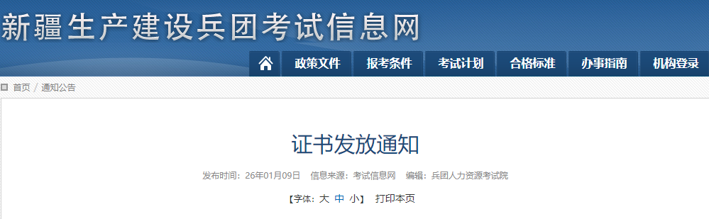 3、考生領(lǐng)取證書。兵直考生在兵團政務服務中心(烏魯木齊市天山區(qū)青年路775號2樓)領(lǐng)取,咨詢電話:0991-2899378、8880763;各師考生在所屬師局考試管理機構(gòu)領(lǐng)取,領(lǐng)取事宜咨詢各師,聯(lián)系方式見“兵團考試信息網(wǎng)”“通知公告”欄目。