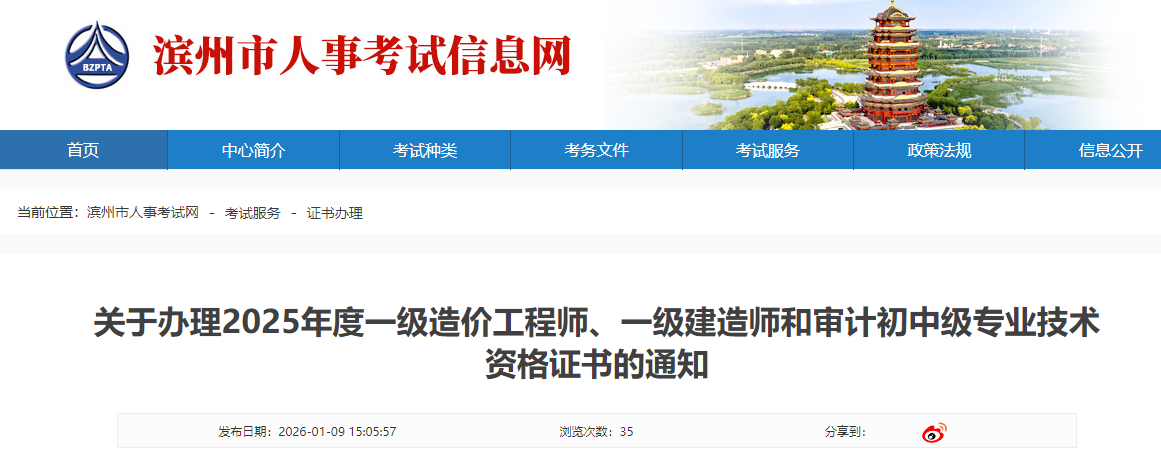 濱州市2025年度一級造價工程師、一級建造師和審計初中級專業(yè)技術(shù)資格證書已下發(fā)至我市,現(xiàn)將有關(guān)事項通知如下: