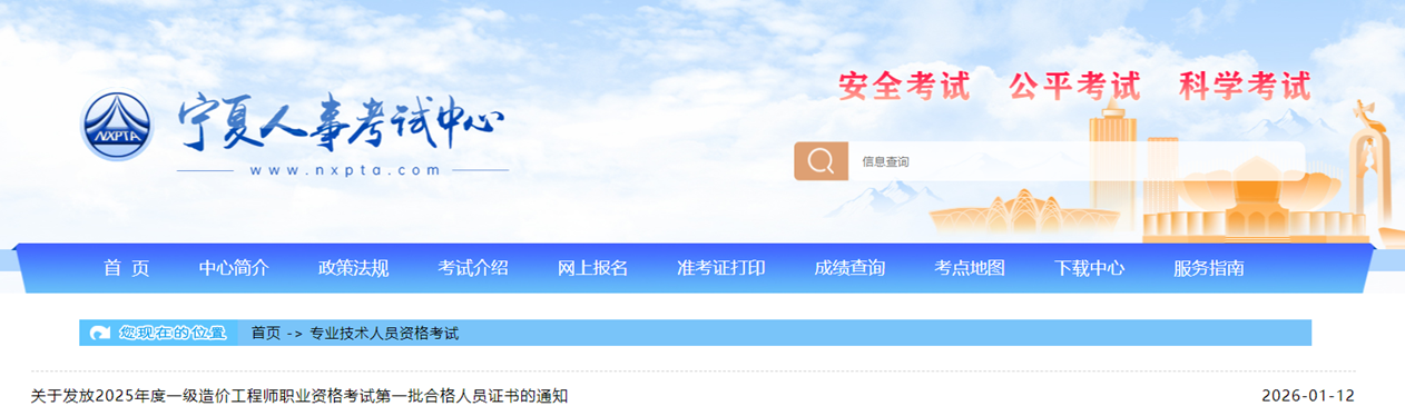 寧夏考區(qū)2025年度一級(jí)造價(jià)工程師職業(yè)資格考試第一批合格人員證書發(fā)放通知