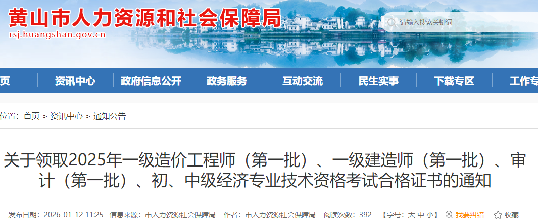 安徽省黃山市2025年一級造價(jià)工程師(第一批)證書領(lǐng)取通知