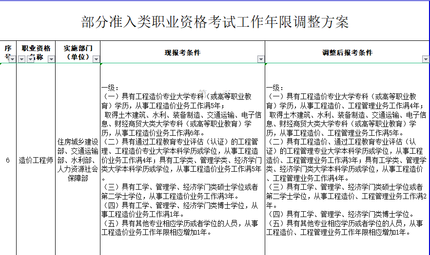 關(guān)于一級(jí)造價(jià)師職業(yè)資格考試工作年限調(diào)整方案公示