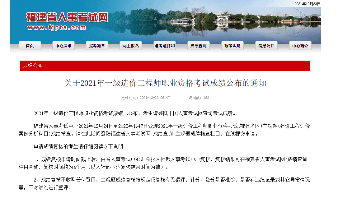 福建省2021年一級(jí)造價(jià)工程師職業(yè)資格考試成績(jī)公布的通知