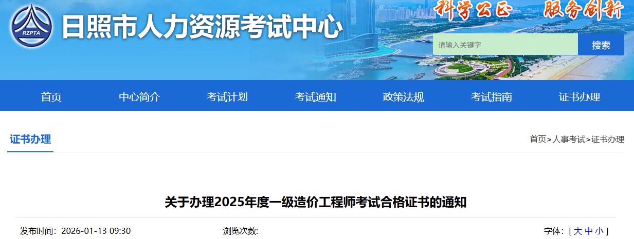 山東省日照市2025年度一級(jí)造價(jià)工程師資格證書辦理通知已發(fā)布,詳情如下: