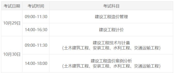 一級造價師考試時間