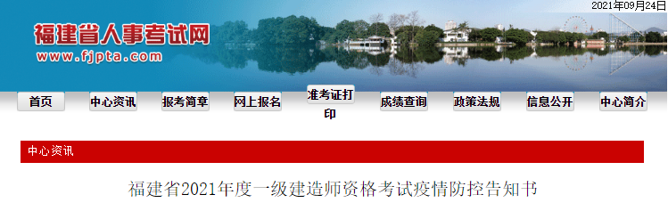 福建省2021年度一級(jí)造價(jià)師資格考試疫情防控告知書