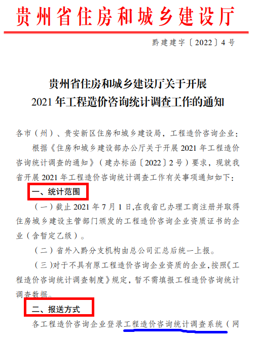 貴州省住房和城鄉(xiāng)建設廳關(guān)于開展2021年工程造價咨詢統(tǒng)計調(diào)查工作的通知