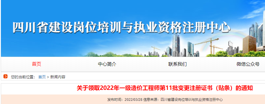 四川關(guān)于領(lǐng)取2022年一級造價(jià)師第11批變更注冊證書(貼條)的通知
