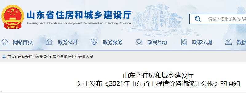 山東關(guān)于發(fā)布《2021年山東省工程造價(jià)咨詢統(tǒng)計(jì)公報(bào)》的通知