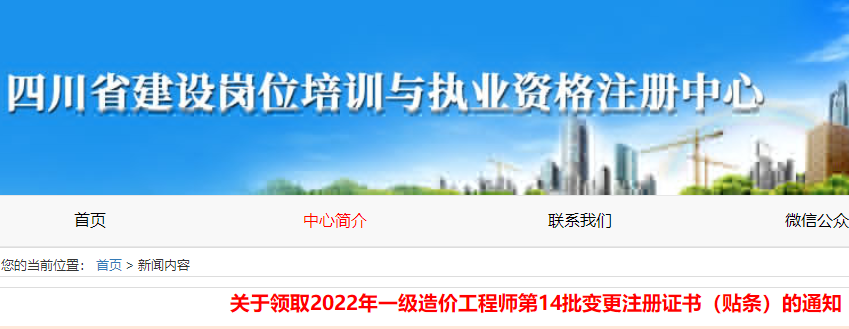 四川關(guān)于領(lǐng)取2022年一級(jí)造價(jià)師第14批變更注冊證書(貼條)的通知
