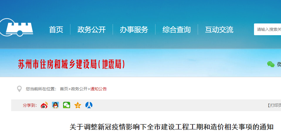 蘇州關(guān)于調(diào)整新冠疫情影響下全市建設(shè)工程工期和造價相關(guān)事項的通知