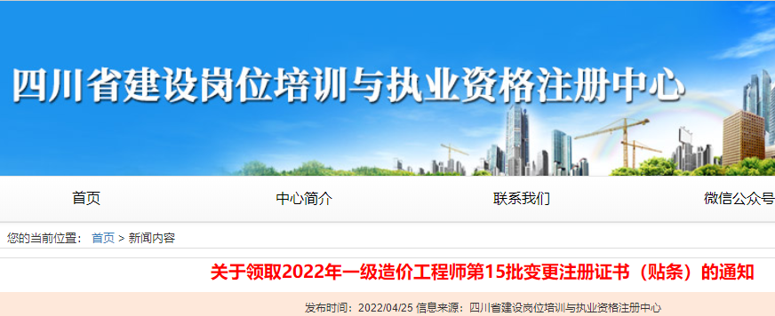 四川關(guān)于領(lǐng)取2022年一級造價(jià)師第15批變更注冊證書(貼條)的通知