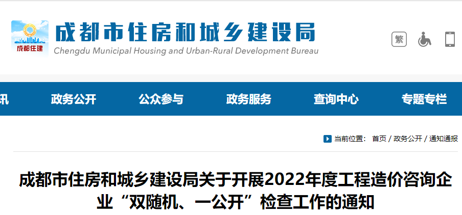成都開展2022年工程造價(jià)咨詢企業(yè)“雙隨機(jī)、一公開”檢查工作的通知