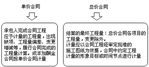 B 單價合同、總價合同、成本加酬金合同適用一樣的計量方法