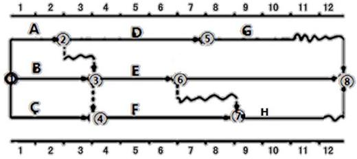 某工程雙代號時標網絡計劃如下圖所示,其中工作A的總時差為( )周。