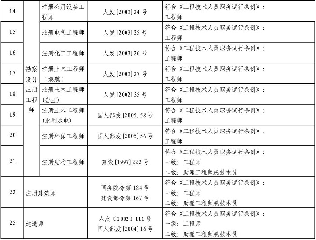 二、對于取得一級注冊結(jié)構(gòu)工程師、一級建筑師或一級建造師資格的人員,可聘任工程師職務(wù);對于取得二級注冊結(jié)構(gòu)工程師、二級建筑師或二級建造師資格的人員,可聘任技術(shù)員過著助力工程師職務(wù)。