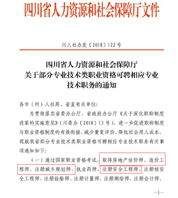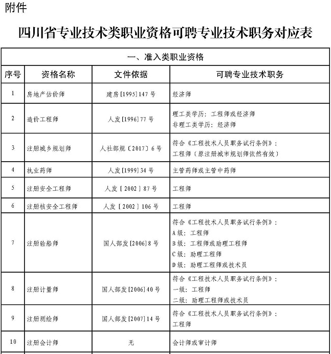 四川省關(guān)于部分專業(yè)技術(shù)類職業(yè)資格可聘相應(yīng)專業(yè)技術(shù)職務(wù)的通知