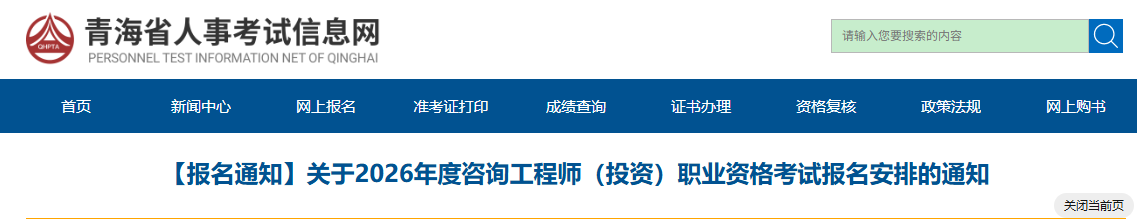 青海關(guān)于2026年度咨詢工程師(投資)職業(yè)資格考試報名安排的通知
