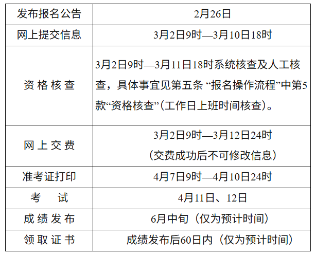 | 準(zhǔn)考證打印 | 4月7日9時—4月10日24時 |